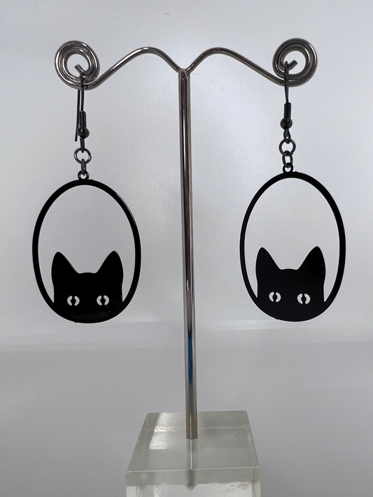 🌟 Élégance Féline : Boucles d'Oreilles Tête de Chat Noir Fabriquées avec Amour 🐾