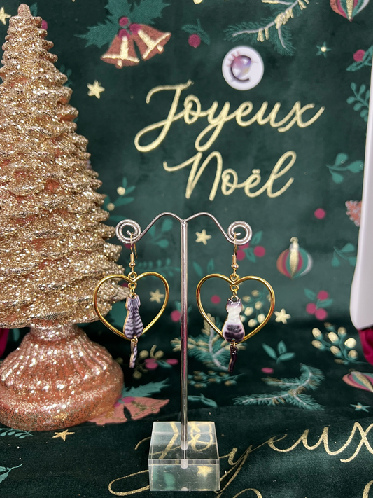🐾💖 Compagnon Câlin : Boucles d'Oreilles Cœur avec Chat de Dos 💖🐾