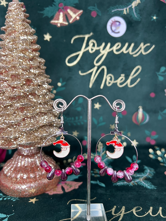 🎄✨ Élégance Festive : Boucles d'Oreilles Perles et Gouttes avec Tête de Père Noël ✨🎅🏻