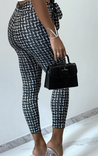 Pantalon slim noir avec motif, poches et ceinture taille XL/2XL